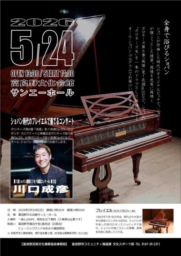 富良野市公式サイト【公演「ショパン時代のプレイエルで奏でるコンサート」】